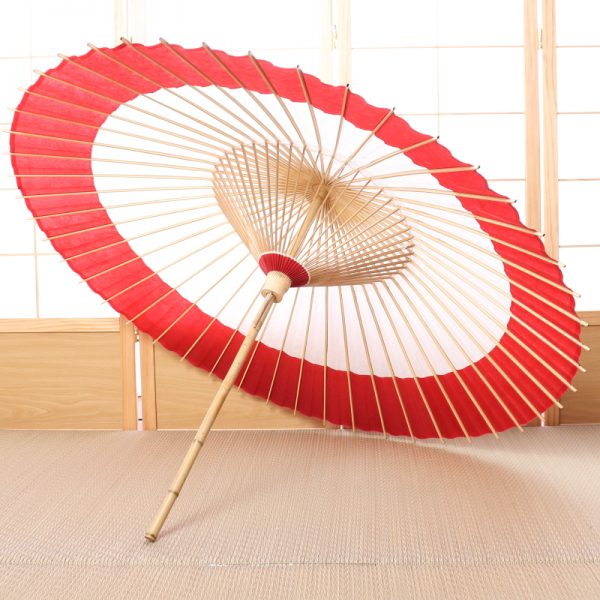 番傘の持ち手は竹のままを使用し、素竹の良さをいかしたシンプルで少し太めの和傘です。
