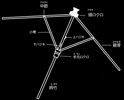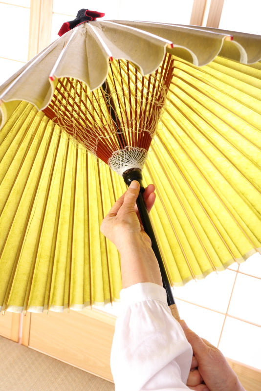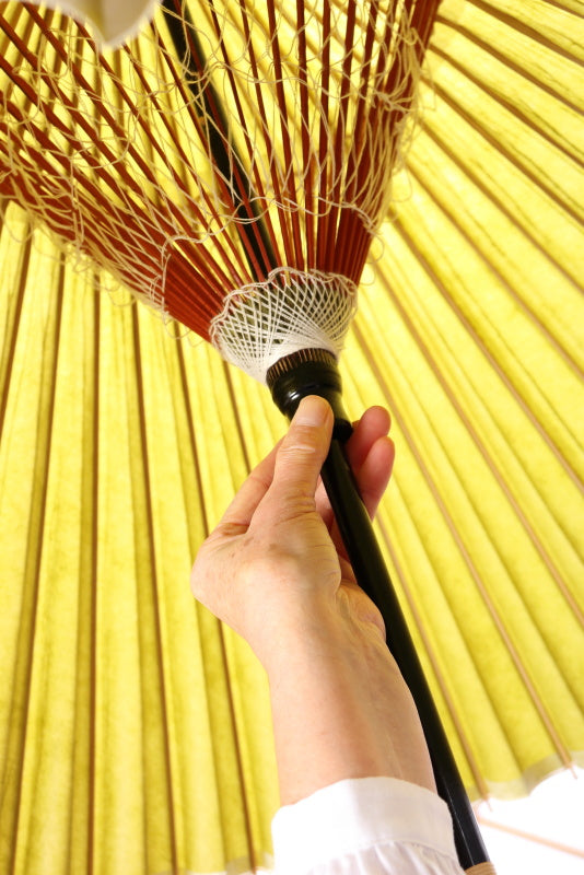通常の傘の開閉など、実用には十分ご使用に耐えるように作られておりますが、舞踏などにご使用の際、大きく振り回す、傘の柄を強く打ち付ける、などの所作により過剰な負荷がかかり、傘が破損する場合がございます。