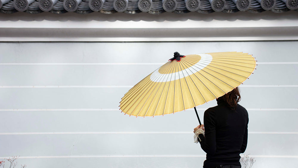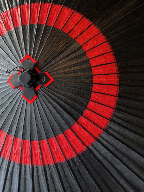 持ち手の部分には木や黒竹を、傘を止める部分は木を用い古くからある和傘の仕様を復活しました。